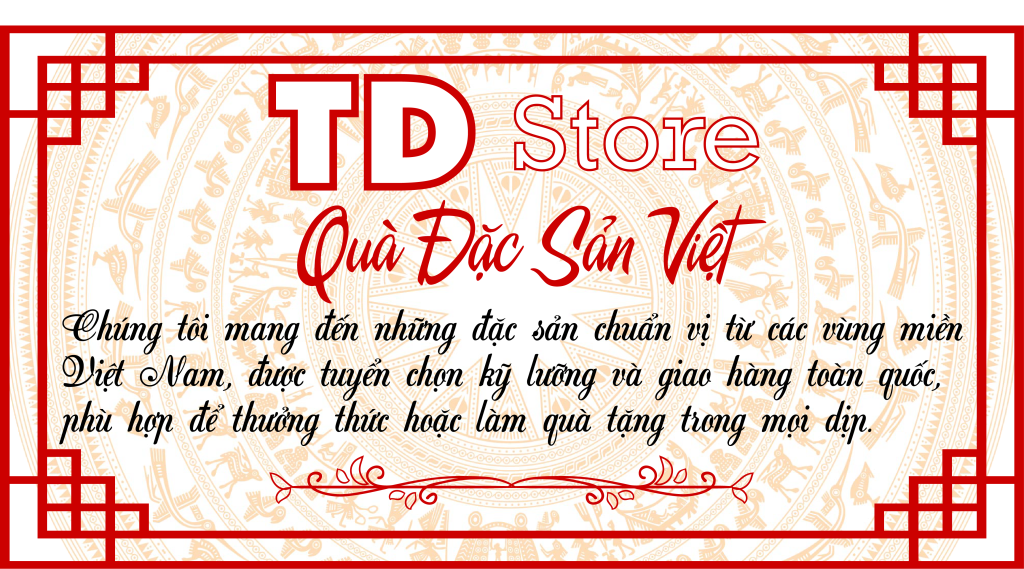 TD Store – Quà Đặc Sản Việt mang đến những đặc sản chuẩn vị từ khắp vùng miền, được tuyển chọn kỹ lưỡng để đảm bảo chất lượng và hương vị truyền thống. Chúng tôi giao hàng nhanh chóng, hỗ trợ vận chuyển toàn quốc, giúp bạn dễ dàng thưởng thức hoặc lựa chọn làm quà tặng ý nghĩa cho mọi dịp.