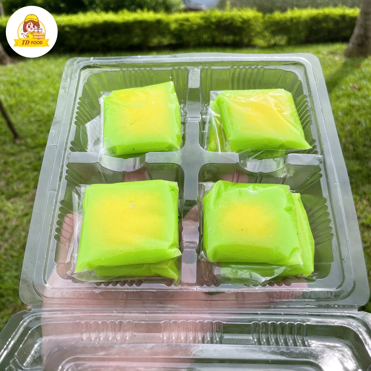 Vỏ bánh mềm, nhân cốm dẻo thơmLớp vỏ bánh dẻo mịn, kết hợp hài hòa với nhân cốm dẻo bùi, thanh mát – tạo nên một món bánh vừa truyền thống, vừa mới lạ, phù hợp với mọi độ tuổi.
