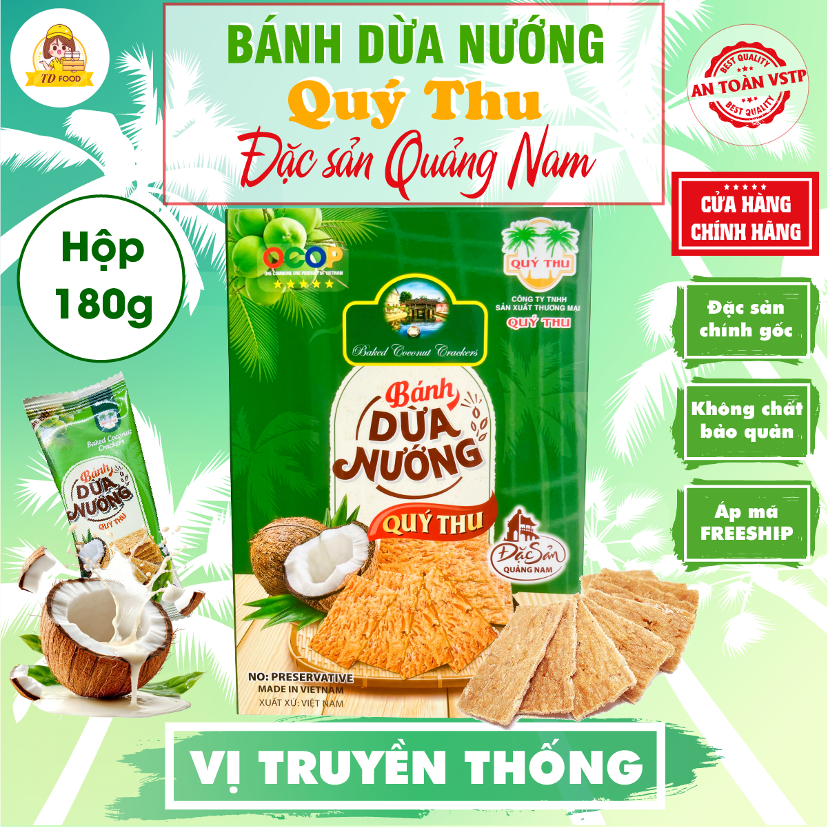 Bánh Dừa Nướng Quý Thu Vị Truyền Thống Bịch 120g / Bịch 225g / Hộp 180g – Đặc Sản Quảng Nam Ăn Vặt, Làm Quà